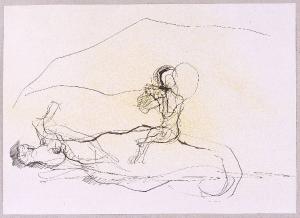 Suonatore di flauto. Suonatore di flauto su toro disteso