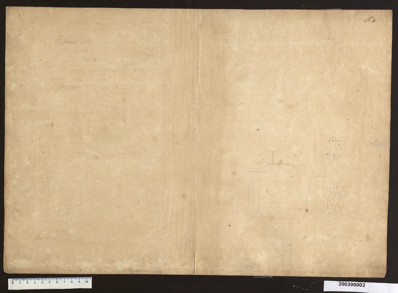 - NOTIZIE STORICO CRITICHE Lo schizzo verosimilmente traccia il profilo di una volta ribassata pensata per l'edificio delineato nel progetto sul recto, cui rimandano anche alcuni appunti di calcolo.
