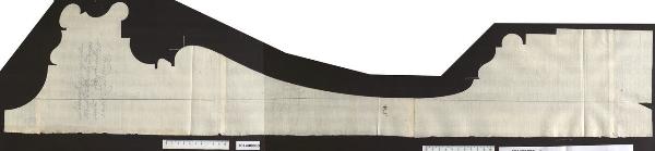 disegno sagomato che conserva tracce della preliminare costruzione a grafite; è eseguito con tiralinee e compasso; il disegno è tracciato su supporto di carta avorio composto da cinque fogli incollati