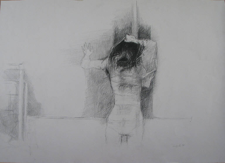 - NOTIZIE STORICO CRITICHE Il disegno appartiene al periodo milanese di Cappelli, che ha inizio con il trasferimento dell'artista nella capitale lombarda nel 1959, dopo un decennio di attività trascorso a Roma. \nLa figura femminile sola, ritratta in un interno di cui si intravedono un letto sfatto o qualche altro oggetto dell'arredamento, è il soggetto privilegiato dell'artista. Una dimensione domestica in cui però interviene, come scrive Marcello Azzolini, "tutto un contesto relazionale con la realtà esasperata e nevrotica della condizione umana metropolitana e industriale" (in De Micheli 1974, p. 9).\nCappelli stesso visse di persona il passaggio dalla provincia alla metropoli. Scrive Davide Lajolo: "Naturalmente l'impatto, anche se voluto, non è stato facile. La città grande non è prodiga di felicità e ha difficoltà a conoscerti e ad essere generosa. Così le tele di Capelli sono nate dolenti" (Lajolo D. 1975).\nLa dimensione di sofferenza e solitudine dell'uomo contemporaneo all'interno della città è uno dei temi cari alla corrente del Realismo Esistenziale, cui l'artista emiliano si avvicina una volta giunto a Milano, soprattutto attraverso la frequentazione dei pittori Banchieri, Vaglieri e Ferroni.\nRispetto ai modi del Realismo Esistenziale, Mario De Micheli nota in Cappelli una più consapevole esigenza delle strutture formali e il mantenimento delle sue doti grafiche, che nei dipinti non risultano mortificate bensì accentuate dall'intervento del colore: "le doti di un disegno che s'indurisce e si fa amaro nella scarnificazione dei personaggi, definendone i caratteri con singolare efficacia" (De Micheli 1974, p. 8). \nNel disegno della collezione Lajolo la naturale assenza del colore e il concentrarsi del tratto intorno alla figura lasciano in bianco estese porzioni del foglio con il risultato di sottolineare ancor più il vuoto degli spazi e la solitudine del personaggio.