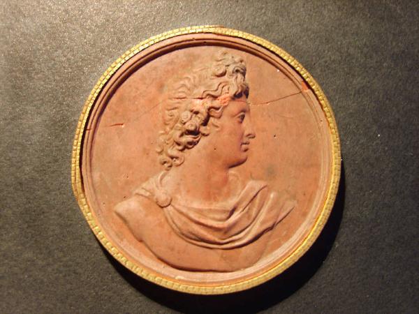 Calco circondato da una fascetta in carta bordata d'oro; il diametro del calco, compresa la fascetta, è di cm 8.3.