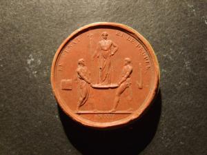 Calco circondato da una fascetta in carta bordata d'oro; il diametro del calco, compresa la fascetta, è di cm 4.2.