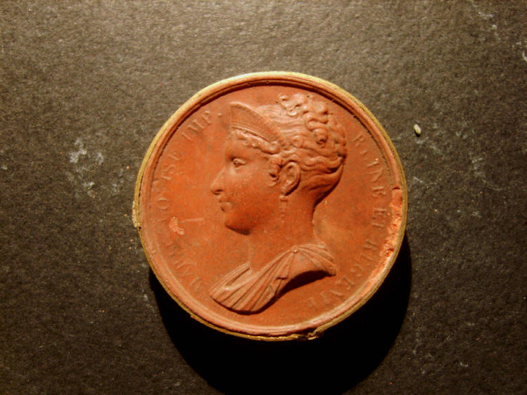 Calco circondato da una fascetta in carta bordata d'oro; il diametro del calco, compresa la fascetta, è di cm 4.2.