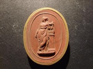 Calco circondato da una fascetta in carta bordata d'oro; le misure del calco e della fascetta insieme sono cm 5.5X4.2.