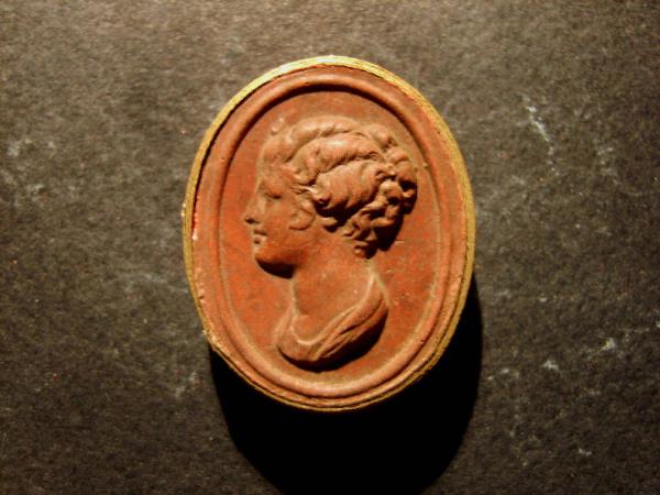 Calco circondato da una fascetta in carta bordata d'oro; le misure del calco e della fascetta insieme sono cm 3.7x3.