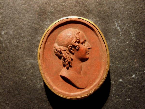 Calco circondato da una fascetta in carta bordata d'oro; le misure del calco e della fascetta insieme sono cm 3.7x3.
