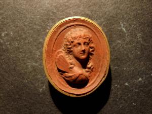 Calco circondato da una fascetta in carta bordata d'oro; le misure del calco e della fascetta insieme sono cm 3.6x3.