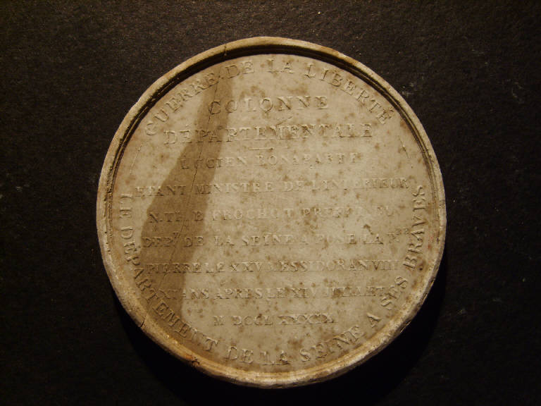Medaglia commemorativa della posa della prima pietra della Colonna Dipartimentale. Iscrizione commemorativa della colonna dipartimentale