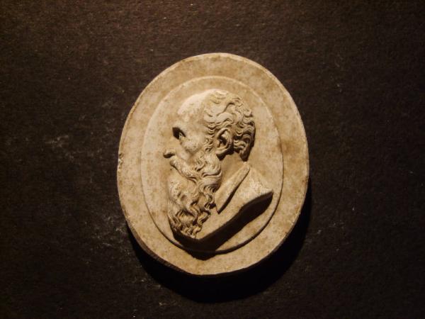 Testa di vecchio barbuto di profilo