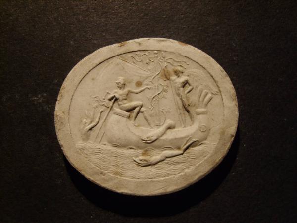 Figure maschili su un'imbarcazione attaccata da mostri marini