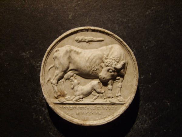 Allegoria della conquista dell'Illiria con vitello che si nutre da una mucca e una clava