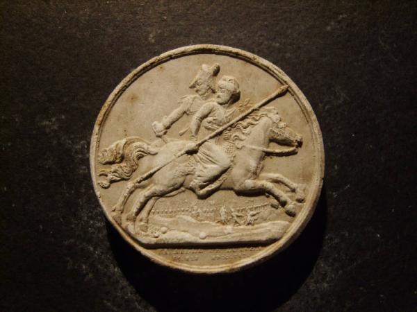 Medaglia commemorativa della battaglia di Lutzen. Soldati in fuga davanti all'armata francese