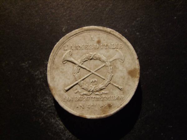 Medaglia commemorativa delle battaglie di Castiglione e Peschiera. Trombe e corona d'alloro