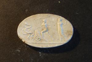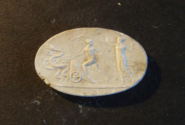 Scena mitologica con fanciulla che fugge su biga trascinata da serpenti alati