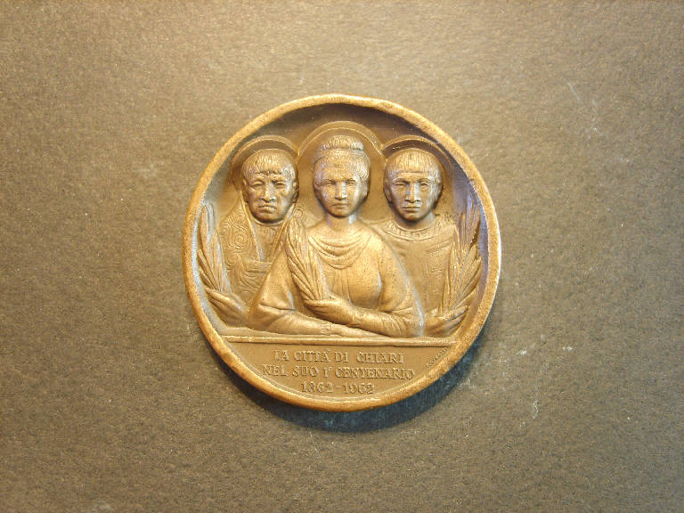 Medaglia commemorativa del primo centenario della città di Chiari. Santi Faustino e Giovita e sant'Agape/ Stemma della città di Chiari
