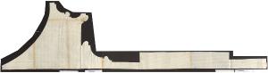 disegno eseguito con grafite, principalmente a mano libera, con tratti a tiralinee e compasso; è tracciato su foglio sagomato di carta chiara. Il supporto è composto da otto fogli incollati. L'orientamento corretto del foglio prevede come base il lato corto con iscrizione di quattro righe