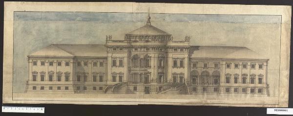 - NOTIZIE STORICO CRITICHE Per la datazione di questo progetto disponiamo di un termine post quem che è il riconoscimento del titolo di marchese di Fosdinovo, conferito a Carlo Agostino Malaspina (1671-1722) nel 1693, da Leopoldo I. Il progetto è forse maturato durante il soggiorno del Martinelli in Italia nel 1699-1700, ma ancora più probabilmente solo dopo il suo ritorno definitivo in patria nel 1705 (per lo stesso committente ideò un progetto di trasformazione del castello di Fosdinovo). Una descrizione del Martinelli relativa alla costruzione della villa, chiarisce alcune caratteristiche del progetto, si tratta della "Annotazione concernente l'esecuzione del Palazzo da erigersi nuovamente in Caniparola, Villa di… Marchese di Fosdinovo" (Biblioteca Statale di Lucca, ms. n. 1856, ff. 62r-67v). L'edificio ha notevoli dimensioni, sviluppato in altezza per tre piani per circa 18 metri, dove il piano terra (alto 24 palmi) funge da basamento, "che regni sotto le pilastrate", mentre il piano nobile (alto 37 palmi) e il mezzanino (alto 25 palmi) erano unificati da lesene giganti in cadenza ritmica. L'ampiezza totale della costruzione risulta essere più di 100 metri, e al suo interno i locali erano disimpegnati da 11 scalinate. Il prospetto è articolato in cinque settori, quello centrale monumentale e aggettante, caratterizzato da lesene doriche giganti alte 57 palmi. La decisione di far emergere volumetricamente questa porzione dell'edificio, è spiegata dallo stesso Martinelli, che afferma che un'altezza omogenea di tutte le parti "verrebbe all'occhio troppo odioso; nel mezzo dunque si farà elevata di alquanto, … per oltre la vaghezza dà commodo alla Sala di farla più sfogata, seguendo l'ordine della natura mentre questa ci insegna che la testa sopravanzi le spalle". In questa ala soprelevata doveva essere sistemata la grande sala a tutta altezza, la cui pianta rotonda si intuisce dalla copertura e dalla sezione in Milano, Collezione Sardini Martinelli inv. 9,38. A questa, doveva condurre una scalinata con 44 gradini. Per la facciata aggettante Martinelli propone, sul medesimo disegno, due soluzioni: quella di sinistra con portico trabeato e soprastante loggia a serliana, quella di destra con porte e finestre dagli elaborati profili, e timpano alternato triangolare e curvilineo. Anche per il settore rientrante dell'edificio, compreso tra l'aggetto angolare e quello centrale, Martinelli fa due proposte: a sinistra continua il partito decorativo delle lesene inquadranti finestre, a destra inserisce un portico a serliana al piano terra, e finestre quadrate con davanzale sostenuto da mensole con gutte sul modello di quelle di Austerlitz. In questo progetto, nel quale possiamo rintracciare il riferimento a modelli berniniani, Martinelli rappresenta una specie di "summa" di tutte le esperienze accumulate durante il suo soggiorno a Vienna nell'ambito dei principali incarichi di costruzione del "Gartenpalais".