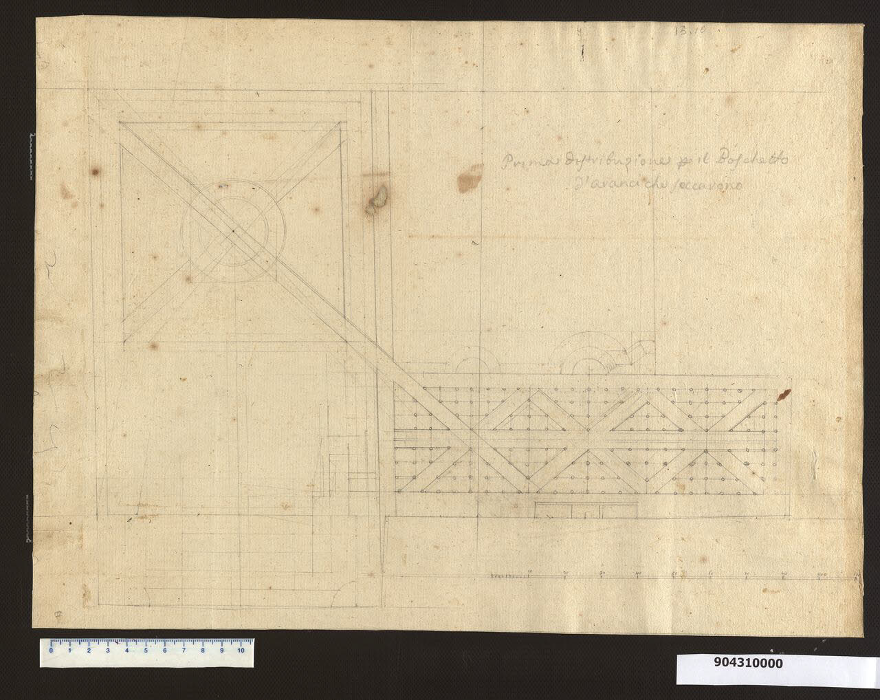 disegno di progetto; eseguito interamente a grafite; riga e compasso; il disegno è tracciato su supporto di carta avorio