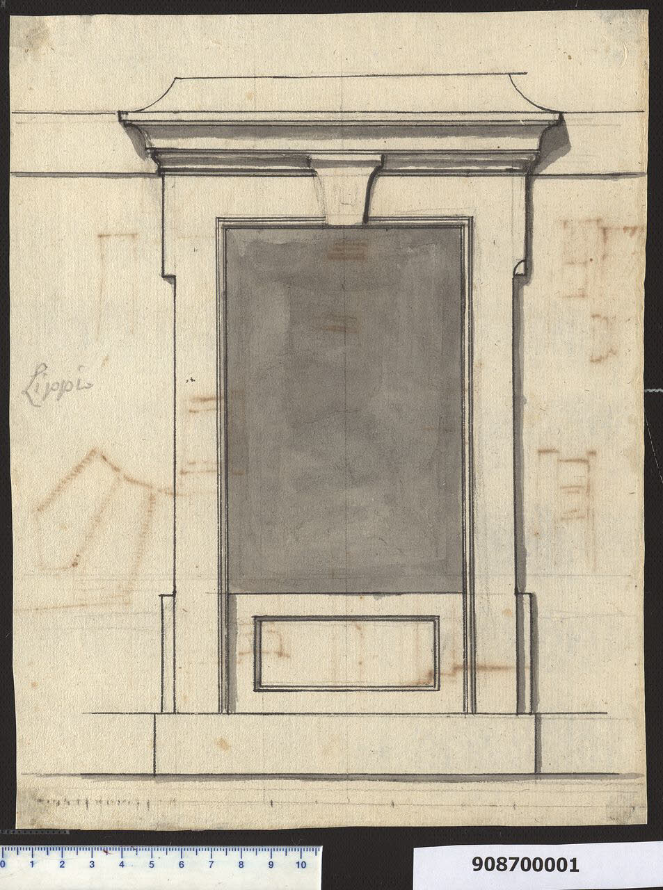 - NOTIZIE STORICO CRITICHE La paternità del disegno è dichiarata, sul foglio, da un appunto del collezionista, il marchese Giacomo Sardini. Il progetto di finestra sembra riconducibile alla fase di parziale ristrutturazione della villa alla quale attese il nobile rivolgendosi al capomastro Lippi e testimoniata da un altro disegno (Milano, Collezione Sardini Martinelli inv. 9,42) con il quale la presente definizione in dettaglio della finestra potrebbe essere in relazione. La tipologia della finestra si riallaccia con quanto era stato proposto per il piano nobile in un precedente progetto di ristrutturazione globale, poi abbandonato (Milano, Collezione Sardini Martinelli inv. 7,19 e 7,20, pubblicati in Sabatini, 1993, p. 62). Infatti tra il 1757 e il 1758 il padre di Giacomo, assente da Lucca per una missione diplomatica, aveva incaricato il fratello della "restaurazione della casa della Pieve" (Archivio di Stato di Lucca, Archivio Sardini (=AS), cart. 98, documenti 46 e 158). Il nipote, una volta subentrato nella gestione del patrimonio di famiglia, manifestò una certa preoccupazione per le spese che le idee dello zio avrebbero comportato in un momento carico di vincoli finanziari: "erami impegnato in una casa di campagna, che mio zio e tutore mi aveva costretto ad intraprendere per la quantità di fabbriche acessorie, che aveva egli preparato" (AS, cart. 128 Memorie ...M. Teresa Sardini, f.5). In quella prima fase pensò dunque di riformare quanto era già costruito, dapprima apportando contenute modifiche ed in seguito avviando un processo di ideazione che porterà ad una globale ristrutturazione secondo forme del tutto diverse da quelle delineate nel progetto inv. 7,19-20. La villa fu demolita intorno al 1930.