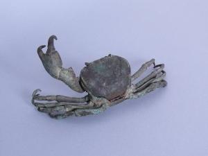 - NOTIZIE STORICO CRITICHE Oggetti di questo tipo scaturirono dalla fantasia di Andrea Briosco detto il Riccio e della sua bottega padovana; si diceva venissero fusi da "calchi naturali" e servirono come supporti, lucerne, cofanetti, calamai. Questo contenitore per la sabbia fine usata per asciugare l'inchiostro fresco faceva parte probabilmente di un completo da scrivania. \nC. Pidatella\n\nAltri esemplari noti: in Italia ne è conservato uno al Castello del Buonconsiglio di Trento (M. Leithe-Jasper, F. de Gramatica, Bagliori d'antico. Bronzetti al Castello del Buonconsiglio, Trento 2013, pp. 76-79, n. 5), alcuni al Museo Nazionale del Bargello a Firenze e al Museo Correr a Venezia. All'estero ne sono conservati quattro esemplari al Kunsthistorisches Museum di Vienna (M. Leithe-Jasper, Renaissance Master Bronzes from the Collection of the Kunsthistisches Museum Vienna, Washington 1986 p.100, n. 16); altri si trovano al Bode Museum di Berlino, al Victoria and Albert Museum di Londra, al Museum Boymans-van Beuningen di Rotterdam (E. Binnebake (van), Bronssculptuur. Beeldhouwkunst 1500-1800 in de collectie van het Museum Boymans-van Beuningen, Rotterdam 1994, p. 58-59, n. 8), e alla National Gallery of Art di Washington (J. Pope-Hennessy, Renaissance bronzes from the Samuel H. Kress Collection. Reliefs, plaquettes, statuettes, utensilis and mortars, London 1965, pp. 138-139, nn. 505-511).