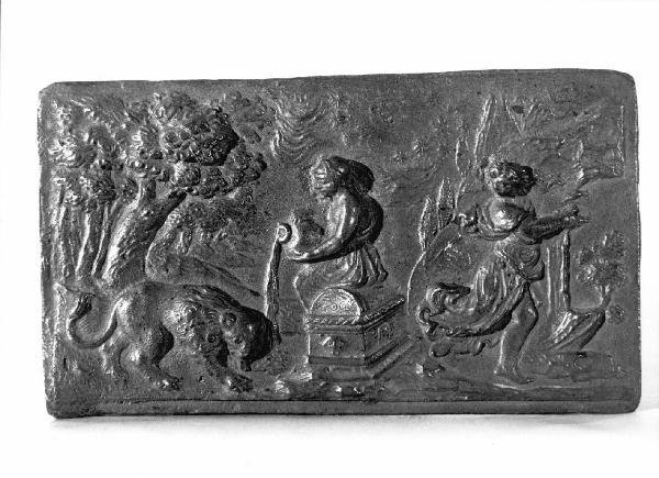 - NOTIZIE STORICO CRITICHE Questa placchetta insieme alle numero di inventario 2927 (E 5) e 2928 (E 6) facevano parte della decorazione del medesimo cofanetto.