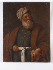 Dipinto privo di cornice raffigurante un vecchio turco con turbante. Dal fondo scuro, privo di ogni elemento che potrebbe distogliere l'attenzione dell'osservatore dal soggetto raffigurato, emerge la figura maschile, contraddistinta da un forte realismo nella definizione della fisionomia del volto. La luce proviene da sinistra, creando effetti chiaroscurali morbidi e sottolineando ancor più la ricerca psicologica del personaggio, data da grande naturalezza; predomina una tonalità calda per la gamma cromatica utilizzata. Il soggetto occupa quasi l'intera superficie pittorica messa a disposizione.