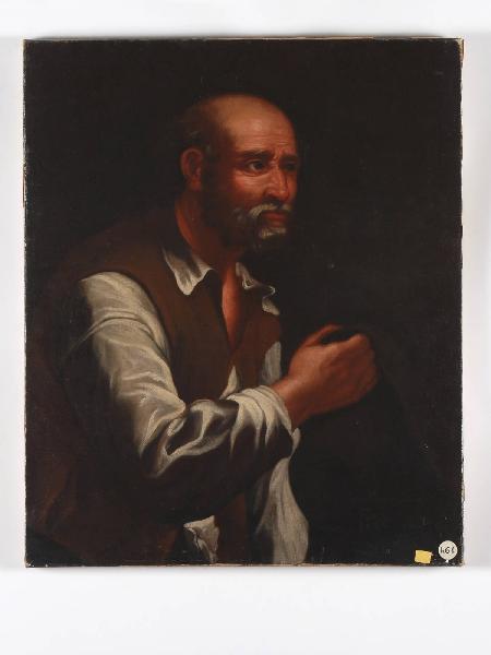 Dipinto privo di cornice raffigurante il ritratto di un popolano. Dal fondo scuro, privo di ogni elemento che potrebbe distogliere l'attenzione dell'osservatore dal soggetto raffigurato, emerge la figura maschile, leggermente di tre quarti, contraddistinta da un forte realismo nella definizione della fisionomia del volto. La luce proviene da sinistra in basso, creando effetti chiaroscurali morbidi e sottolineando ancor più la ricerca psicologica del personaggio, data da una grande umanità e naturalezza.