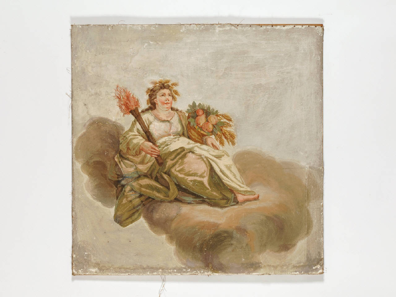 Dipinto in mediocre stato di conservazione raffigurante Cerere posta su una nube. Lo sguardo è rivolto leggermente verso destra; da destra proviene anche la luce che origina contrasti chiaroscurali ed effetti cangianti per quanto riguarda le vesti.