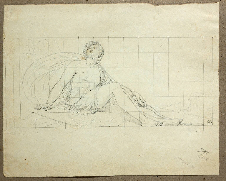 - NOTIZIE STORICO CRITICHE Il foglio, come gli altri di Michele Bisi, è conservato in un album rilegato in pelle, con fregi dorati e la scritta, al centro, "Michele Bisi. Disegni".\nQuesto disegno fa parte di una serie di copie che Michele Bisi trasse dalle "Allegorie dei Continenti", dipinte da Andrea Appiani nel 1809 sulle pareti della "Sala dei Principi" in Palazzo Reale a Milano. Gli affreschi di Appiani, minutamente descritti da Giuseppe Beretta nel 1848 (G. Beretta "Le opere di Andrea Appiani. Commentario", Milano 1848, pp. 269-272), sono andati perduti durante la seconda guerra mondiale: dell' "America" esiste, però, una vecchia foto, pubblicata nel 1936 da Antonio Morassi, con il titolo errato di "Africa" (cfr. A. Morassi "Il Palazzo Reale di Milano", Roma 1936, p. 45); e una litografia, non datata, ma probabilmente del 1840 circa, è conservata presso la "Civica Raccolta delle Stampe Achille Bertarelli" di Milano (segnatura P.V. CART. M. 70-57). La copia eseguita da Bisi, assai fedele, era con ogni probabilità preparatoria per una incisione: ma il progetto non fu mai realizzato; né dell' "America", né delle altre due "Allegorie dei Continenti" si trova traccia, infatti, nella raccolta di opere di Appiani che Michele Bisi incise e pubblicò nel 1820 (M. Bisi "Incisioni delle opere del pittore Cav.re Andrea Appiani dedicate a S.A.I. il granduca Michele di Russia e pubblicate dell'incisore Michele Bisi", Milano, per Nicolò Bettoni, 1820; esemplare presso la "Civica Raccolta delle Stampe Achille Bertarelli", Milano; segnatura Vol. BB. 171).\nPresso la "Civica Raccolta" Bertarelli di Milano sono conservate altre due raccolte di stampe tratte da opere di Appiani, in parte realizzate da Michele Bisi, e solitamente non citate dalla letteratura sull'artista . La prima è un album di cinque tavole sciolte, del tutto privo di note tipografiche (Bertarelli, Vol. BB. 171/ 1): le stampe riproducono l' "Aria" e il "Fuoco", due delle quattro "Allegorie degli elementi" che Appiani aveva dipinto a monocromo sopra le porte della "Sala dei Principi" di Palazzo Reale, e il "Giorno" che, con la "Notte", completava la serie delle sovrapporte della sala (ora perdute); l' "Olimpo"; e infine la "Temperanza", una delle "Virtù" dipinte a fresco nella "Sala del Trono" in Palazzo Reale (ora a Tremezzo, Villa Carlotta). La seconda raccolta è un volume rilegato, privo di note tipografiche (Bertarelli, Vol. BB. 358) e di testo di accompagnamento: le tavole incise sono quelle già comprese nel testo pubblicato da Michele Bisi nel 1820, con l'eccezione dell' "Apollo e Giacinto", e le altre conservate nell'album segnato Vol. BB. 171/ 1. Della storia di questi due volumi non sappiamo nulla: se siano curati ancora da Michele Bisi, o raccolte successive composte da un collezionista; è possibile, tuttavia, che Bisi o l'editore Bettoni avessero pensato ad una seconda serie di incisioni da opere di Appiani, dopo quella pubblicata nel 1820; e a questo progetto erano forse destinate le tavole con le "Allegorie" a monocromo della "Sala dei Principi" e la "Temperanza", ora incluse nell'album della Raccolta Bertarelli, e le copie, mai incise, delle "Allegorie dei Continenti" e di un'altra delle "Virtù" della "Sala del Trono", la "Fortezza".