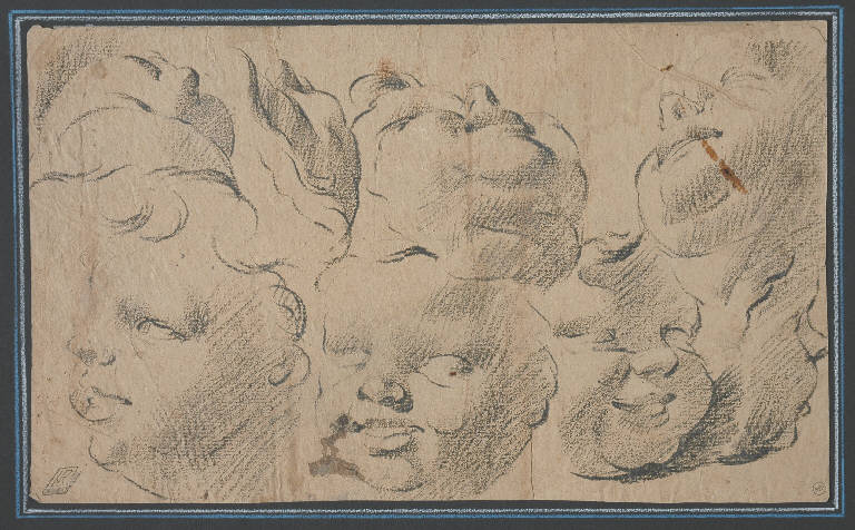 - NOTIZIE STORICO CRITICHE Il disegno sembra essere uno studio di espressione eseguito probabilmente per una scultura, come testimoniano il risalto plastico dato con il chiaroscuro e i diversi punti di vista dai quali è raffigurata (otto volte sul recto, quattro sul verso) la testa. La datazione proposta riguarda il periodo che inizia dall'anno in cui, approsimativamente, lo scultore iniziò a disegnare, e l'anno della morte di questi. Un disegno analogo di Bouchardon, conservato al Louvre, riporta un solo studio di testa, a sanguigna, con lo stesso tratto morbido e la resa uniforme, "avvolgente" del chiaroscuro presenti nel disegno qui catalogato. E' conservata una foto in b/n del recto nell'Album D5.