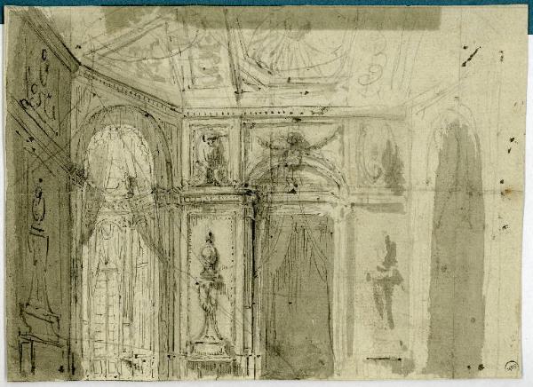 Scena raffigurante un interno riccamente addobbato. Interno