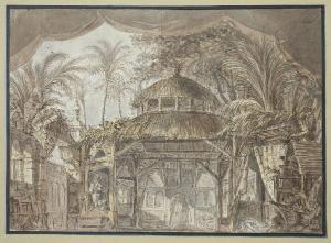 - NOTIZIE STORICO CRITICHE Il disegno è riferibile a Luigi Vacca, nonostante sul supporto venga fornita dal collezionista Lampugnani l'indicazione "A. Vacca". Dell'autore la medesima raccolta conserva numerose prove. Si tratta molto probabilmente di una scenografia per un'opera con ambientazione esotica, come la presenza delle architetture che si colgono a sinistra lascia ipotizzare.