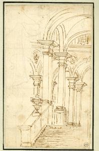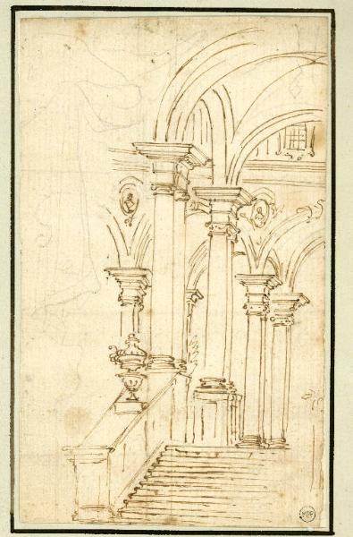 Studio di scalinata con successione di arcate. Architettura illusionistica
