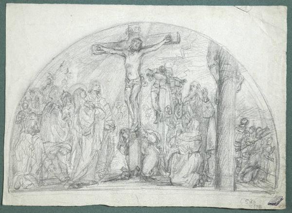 Lunetta con Crocifissione. Crocifissione di Cristo con la Madonna e santa Maria Maddalena