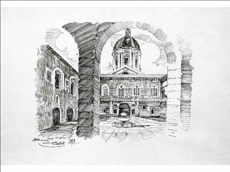 VEDUTA DI PIAZZA DEL BROLETTO E SULLO SFONDO LA CUPOLA DEL DUOMO NUOVO DI BRESCIA