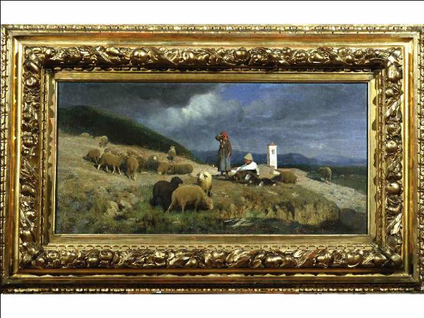 PAESAGGIO CON GREGGE DI PECORE E DUE CONTADINELLI