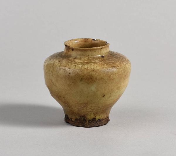 Vaso dal profilo leggermente piriforme e piccolo collo cilindrico. Potrebbe appartenere alla produzione persiana di inizio Novecento.
