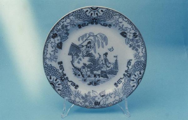 - NOTIZIE STORICO CRITICHE L'influenza dell'arte giapponese in Occidente cominciò a farsi sentire nella seconda metà dell'Ottocento. Già per l'Esposizione Universale di Parigi del 1867 e poi per quella delle Belle - Arti applicate all'industria del 1874, vennero realizzati manufatti in ceramica con decori giapponesizzanti. Tale tipologia, i cui pezzi migliori furono esposti nel 2008 al Musée d'Orsay in occasione della mostra "La Francia guarda il Giappone - Il Giapponismo e le arti della tavola", continuò ad essere riproposta fino ai primi decenni del Novecento.\nNel Museo delle terraglie di Laveno è conservata una ciotola (num. inv. 2102), prodotta dalla Richard nella seconda metà dell'Ottocento, che presenta il medesimo decoro dell'oggetto in esame realizzato sempre con la tecnica della decalcomania ma in versione policroma. Anche in questo caso nel marchio compare il nome "Siam". Si ipotizza quindi che il decoro sia nato all'interno della manifattura Richard e sia stato poi ripreso negli anni successivi dalla S.C.I.. Nel piatto schedato l'uso di una linea più rigida ed essenziale indica infatti una datazione al primo quarto del Novecento.