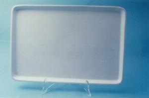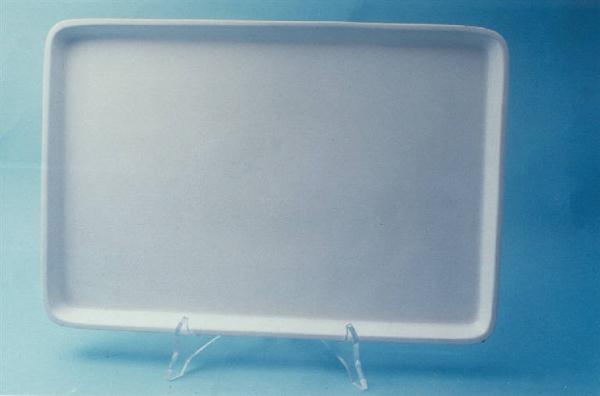 Vassoio rettangolare con bordo rialzato; fondo bianco uniforme.