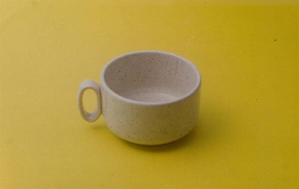 - NOTIZIE STORICO CRITICHE Il design funzionale ed essenziale della tazza indica una datazione alla seconda metà del Novecento. La mancanza del marchio impedisce di risalire con esattezza alla ditta produttrice. L'oggetto è comunque attribuibile ad una generica manifattura lavenese. Stilisticamente si avvicina ai manufatti prodotti dalle Ceramiche Pareschi.