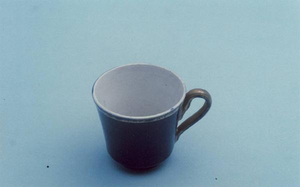 - NOTIZIE STORICO CRITICHE La mancanza del marchio impedisce di risalire con esattezza alla ditta produttrice. L'oggetto è comunque attribuibile ad una generica manifattura lavenese. La foggia della tazza e il manico schiacciato indicano una datazione entro il primo quarto del Novecento: dalla metà del secolo l'adesione alla lezione del funzionalismo porterà alla diffusione della forma concava. La mancanza di un motivo decorativo e di caratteri stilistici particolari impedisce una definizione cronologica più circoscritta. La coloritura blu cobalto è eseguita sottosmalto.