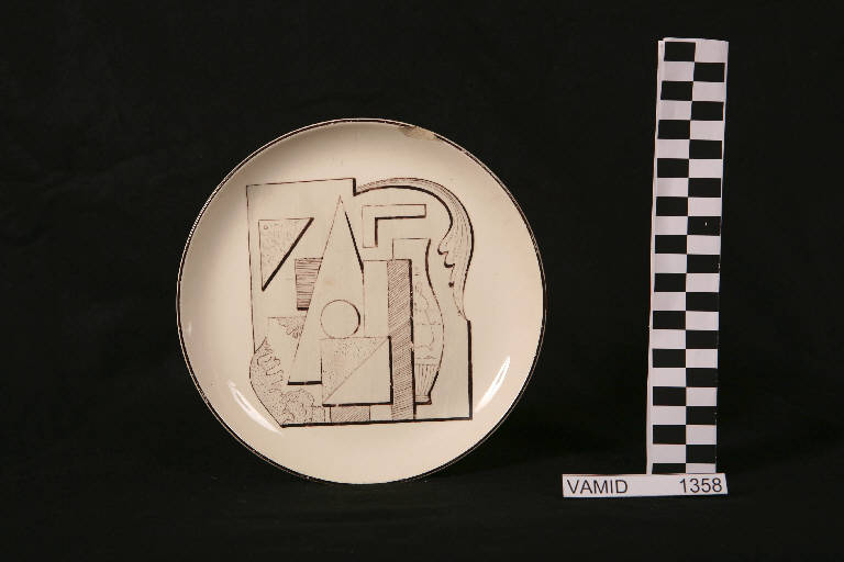 - NOTIZIE STORICO CRITICHE Il piatto, dipinto a mano, fu eseguito nell'ambito delle "esercitazioni" che si svolgevano nella Scuola per Ceramisti di Laveno, istituita nel 1950 e chiusa nel 1963. Gli insegnamenti avevano luogo nei locali della Società Ceramica Italiana ed erano gestiti dalla società stessa. Sotto il piede compaiono la data e la firma dell'allievo che eseguì il piatto (Garzoni M.). Nel Museo di Laveno sono conservati altri pezzi simili (nn. inv. 1347, 1349-1357, 1359-1366).
