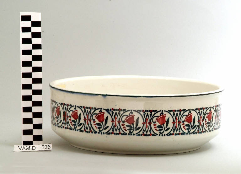 - NOTIZIE STORICO CRITICHE L'oggetto in esame fa parte di un servizio igienico da camera (nn. inv. 525-526). Il decoro è stato applicato sottosmalto con la tecnica delle mascherine.