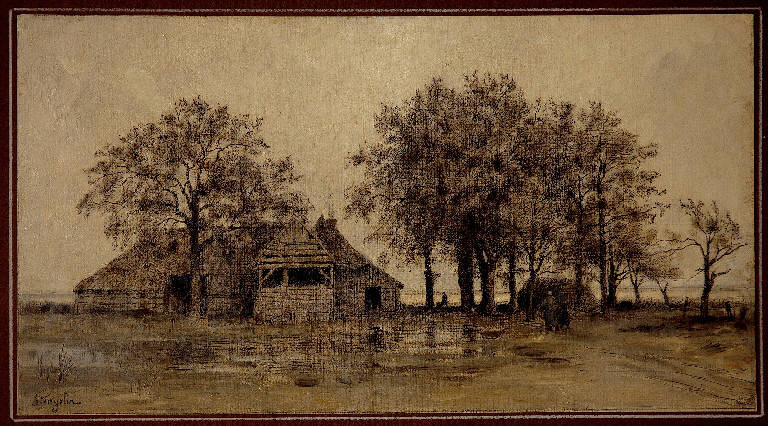 - NOTIZIE STORICO CRITICHE Una foto del dipinto, datata aprile 1969, è conservata nell'album Lampugnani D. 6. L'opera è quindi entrata nella collezione di Riccardo Lampugnani prima di questa data. Questo piccolo paesaggio è firmato "Stangelin" in basso a sinistra; sul cartoncino di supporto Riccardo Lampugnani ha annotatto un breve appunto: "Alphonse Stangelin (Lyon 1852)". Dell'autore, ignoto a tutti i repertori, si conosce solo la data di morte (1938).