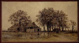 Paesaggio con capanna e figure