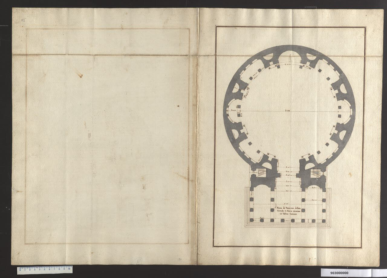 - NOTIZIE STORICO CRITICHE Il Pantheon faceva parte del repertorio classico degli studi di opere antiche e questo foglio, che molto probabilmente faceva parte di una raccolta poi sfascicolata, si riferisce proprio al rilievo della pianta di questa architettura.