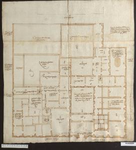 - NOTIZIE STORICO CRITICHE Si tratta della copia di un disegno di Ottaviano Mascherino attualmente nel fondo Mascherino dell'Accademia di S. Luca a Roma (n. 2418). Sul foglio è rappresentata la pianta del piano terra del Palazzo del Monte di Pietà, progettato tra il 1591 e il 1600. Martinelli riporta sul disegno anche tutte le indicazioni circa le destinazioni d'uso presenti sull'originale mascheriniano, ma rispetto a quest'ultimo definisce con maggiore cura l'articolazione degli ambienti nell'angolo superiore sinistro.