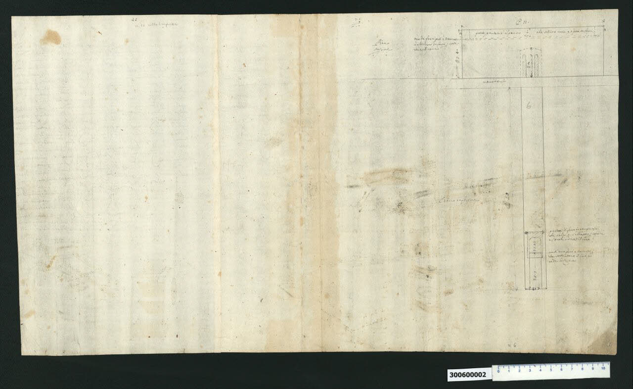 - NOTIZIE STORICO CRITICHE Il disegno riprende in dettaglio la stufa che serve per essiccare il grano già parzialmente illustrata sul recto (Milano, Collezione Sardini Martinelli inv.3,6 R). \nIn particolare viene evidenziato il condotto dove passa il calore prodotto dalla legna accesa, adagiata su una griglia posta alla base dello stesso, attraverso cui scende anche la cenere. La griglia è accessibile attraverso uno sportellino imperniato in alto. Le iscrizioni presenti sul disegno precisano la funzione degli elementi e ne indicano le dimensioni principali.