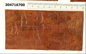 - NOTIZIE STORICO CRITICHE Nell'"Indice" del tomo nel quale il marchese Giacomo Sardini lo aveva rilegato, il disegno viene definito: "Sieguono alcune elucidazioni ricavate dalla Storia Originale di Gio Sercambj nell'Archivio Segreto ... Ricupera di Pietra Buona per assalto".\nLa grafia delle iscrizioni su questo gruppo di disegni, di cui fa parte quello in esame, è riconducibile alla mano di Sardini, che pertanto si può ritenere l'esecutore dei lucidi. Il supporto, reso trasparente per impregnazione con resina, venne adattato all'esigenza del ricalco su esigue superfici suddividendolo in quattordici piccoli rettangoli. A copiatura ultimata, questi furono incollati in bell'ordine su due carte inserite nella legatura del tomo. L'occasione di procurarsi riproduzioni dal codice tardo trecentesco con le Croniche di Sercambi si dischiuse a Sardini quando ottenne un permesso speciale per accedere alla Tarpea (l'Archivio segreto della Repubblica, oggi in Archivio di Stato), che custodiva quei preziosi manoscritti. Intento a raccogliere appunti dai documenti antichi per arricchire i suoi contributi dedicati alla storia artistica locale, il marchese non esitò a copiare alcune illustrazioni del manoscritto, oggetto di studio anche da parte di altri suoi contemporanei. Catturarono la sua attenzione soprattutto i centri fortificati dei dintorni di Lucca fino a Pisa, ma anche particolari di costume. Il copista preferì soffermarsi solo su dettagli dei riquadri figurati e, nei vari lucidi, si possono trovare brani tratti da una sola (come nel caso in esame riconducibile al capitolo CL del manoscritto) o da più vignette.