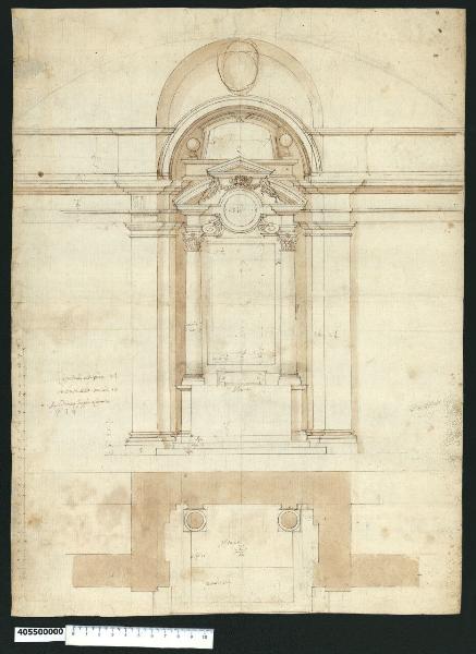Prospetto e pianta dell'altare per Massimo Massimi. Prospetto e pianta dell'altare per Massimo Massimi